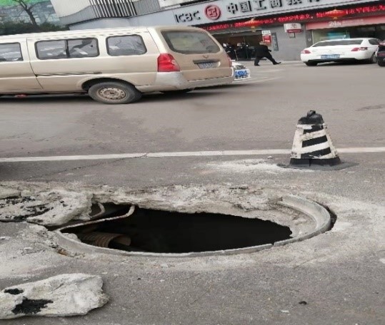 2022年3月5日,市城市綜管服中心街面信息采集員在常規巡查中發(fā)現,龍馬潭區龍馬大道一段256號中國工商銀行店前電力井蓋破損。